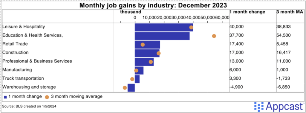 Healthcare and government continue to be the main powerhouses of the labor market, but other sectors have also held up comfortably. Construction, for example, was set to struggle from rising interest rates but has instead made solid gains in recent months. The “tech-cession” has ended, as the information sector added 1,400 jobs in December.