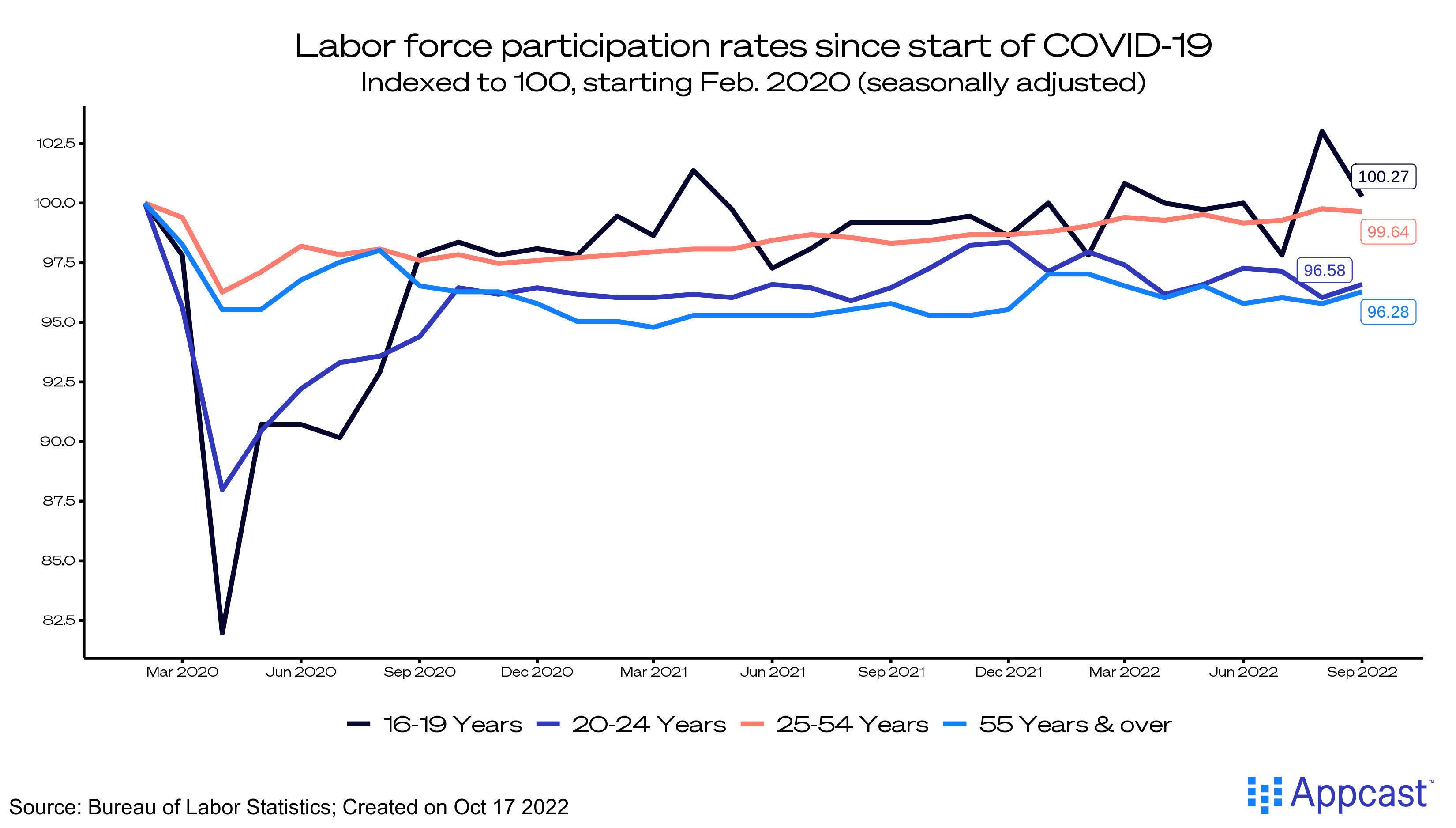 Labor force participation still lags behind its pre-pandemic level, but some age groups are faring far better than others. Breaking down the numbers by age gives a better idea of where workers are lagging – and can perhaps give clues for where recruiters can more easily find candidates.