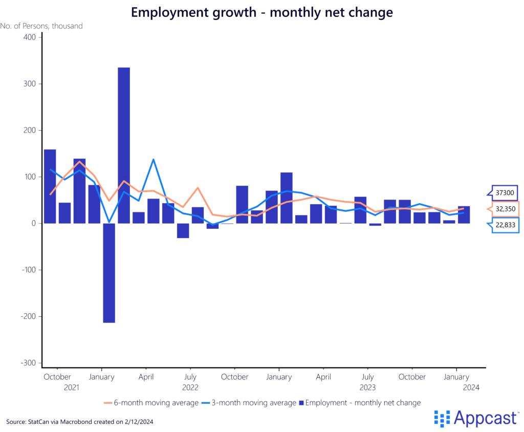 After a poor start to the year, the labor market in Canada surprisingly bounced back, adding 37,300 new jobs in January. The headline number is assuredly a good sign after several months of weak employment growth – however there are some details that are potentially concerning.