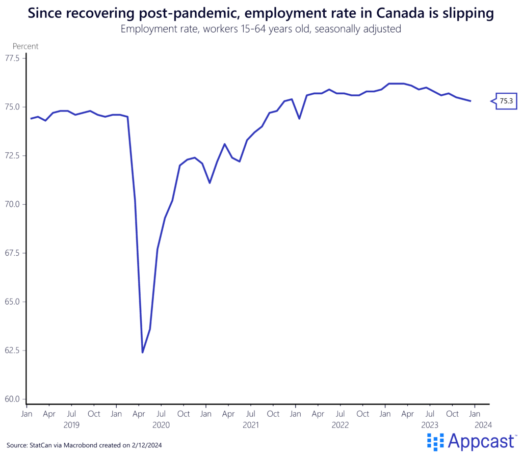 For the fourth consecutive month, Canada’s employment rate – the percentage of the working-age population that is employed – has fallen slightly by 0.1 percentage points. This ongoing decrease in labor supply is a growing concern for the country’s economy, indicating that a larger portion of the workforce is not working or earning an income.