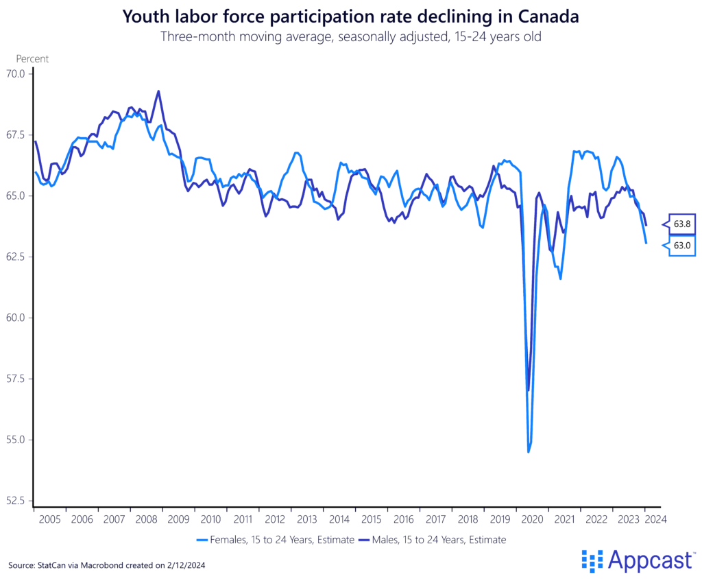 This downturn in youth participation in the labor force underscores a growing concern about the engagement and employment prospects of younger Canadians in the economy.