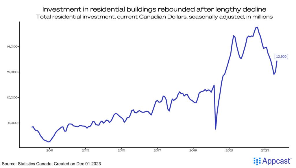 A potential sign of relief for the beleaguered housing market in Canada is a return in residential investment. After many months of declines, investors are starting to feel more confident with a rebound in spending over the past two months. A recent Reuters poll of Canadian economists forecasts potential rate cuts in the second half of the year due to the weakness in the labor market.