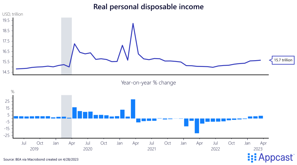 Workers’ real disposable income also showed signs of increasing last month, at $15.7 trillion up 0.2% from the month before.