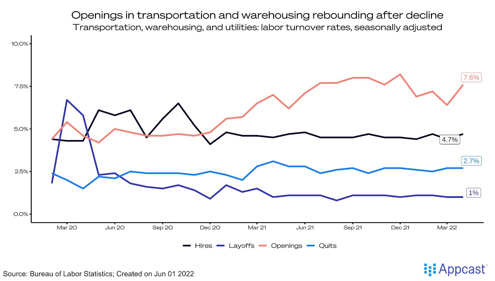 Transportation & warehousing openings rebounded after a decline over the last few months. However, hiring did not pick up much.