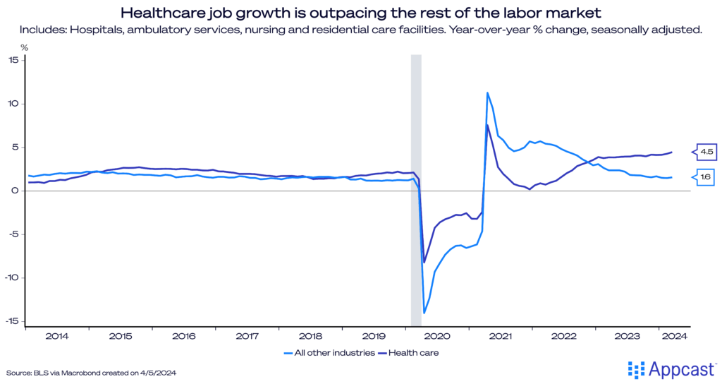The unemployment rate decreased slightly to 3.8% in March, adding to one of the longest streaks of 4%-or-below unemployment. Of course, this represents the enduring tight nature of the labor market.