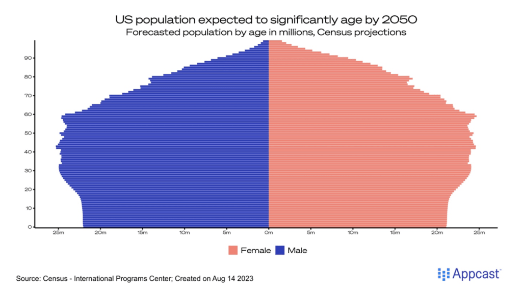 New estimates from the Census show the median age in the U.S. hit a record-high of 38.9 years old. During the post-war boom of the 50s and 60s, the average age was significantly lower, a period of substantial GDP and wage growth. Future estimates put the median at 43.1 years old by 2050, proving the crucial need for an infusion of younger workers to bolster the prime-age workforce and provide critical care to our seniors.