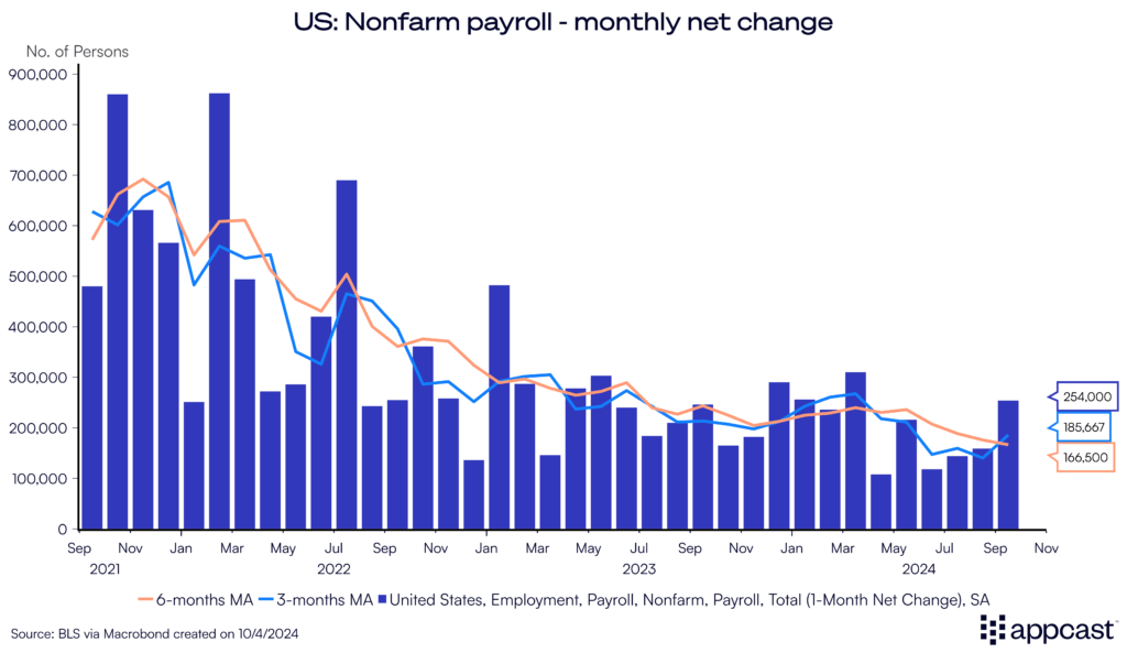 This report could be a sort of October surprise, an event that changes the outlook of the November election. This October surprise may be pulling from September, but we’ll allow it. A strong report could be a boon for Harris, as it lends a final piece of evidence on the strength of the labor market under the Biden Harris administration. Of course, there will be one more jobs report before the election in November. Additionally, the swing state voters that will determine this election may care more about their lived experiences than one positive job report. So, we will have to wait to see how it shakes out in the polls.
