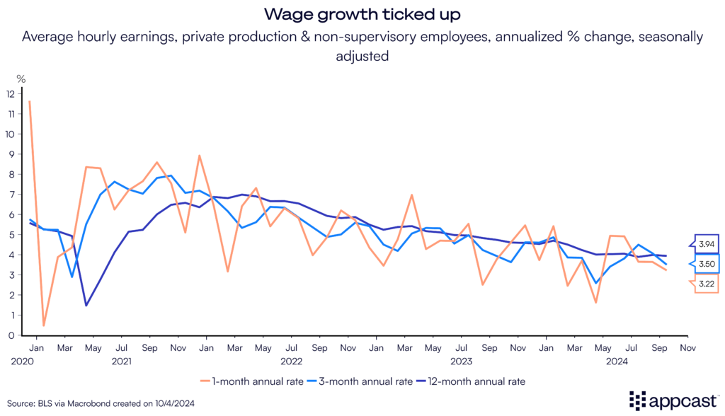 We also see balance with indicators of wage growth bottoming out. Average hourly earnings for non-managers are at 4% year-over-year.