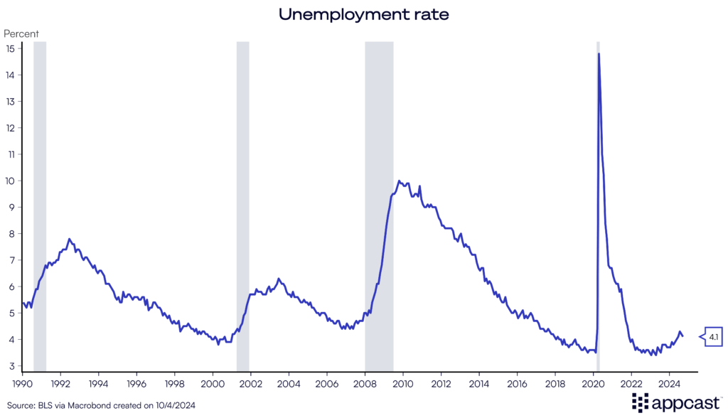 The unemployment rate ticked down to 4.1% for all the right reasons – increasing labor force participation and fewer unemployed workers. Prime-age LFP remains high at 83.8%.