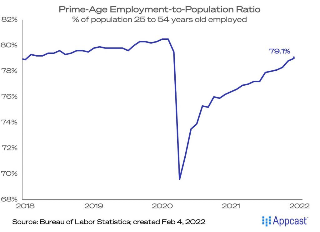 What does this mean for recruiters? Employer demand for workers seems stronger than we previously understood it to be – that means competition is intense. The rebound in labor force participation despite the prevalence of the virus is a bullish indicator that workers could return to the labor force, easing labor shortages. Still, it’s a workers’ market and recruiting remains very challenging.