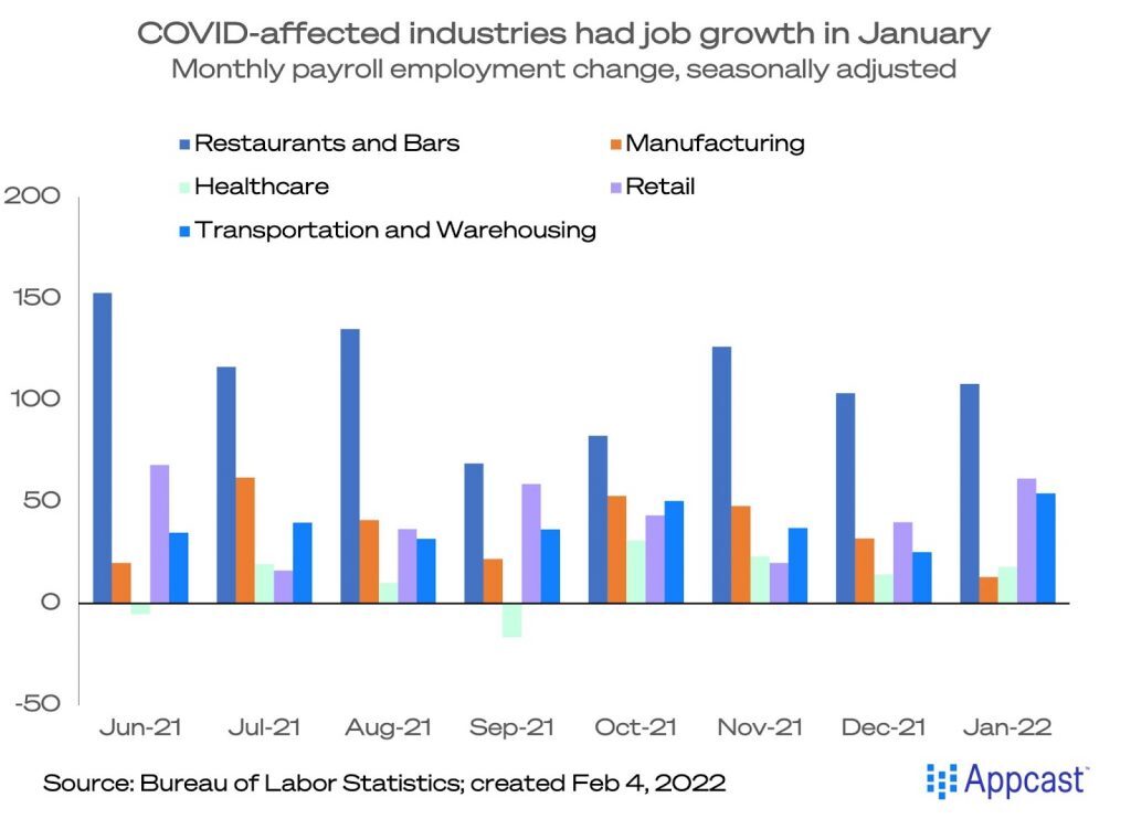 The labor market is booming even more than we thought. The U.S. economy added a shocking 467,000 net new jobs in January 2022, far above expectations, despite the surge of Omicron cases that saw 15 million people get COVID last month. But perhaps more surprising, were revisions to monthly data for all of 2021 that radically changed our understanding of the labor market’s trajectory. Instead of a slowing trend from last summer, job growth looks to be holding steady, and finished 2021 with an upswing.