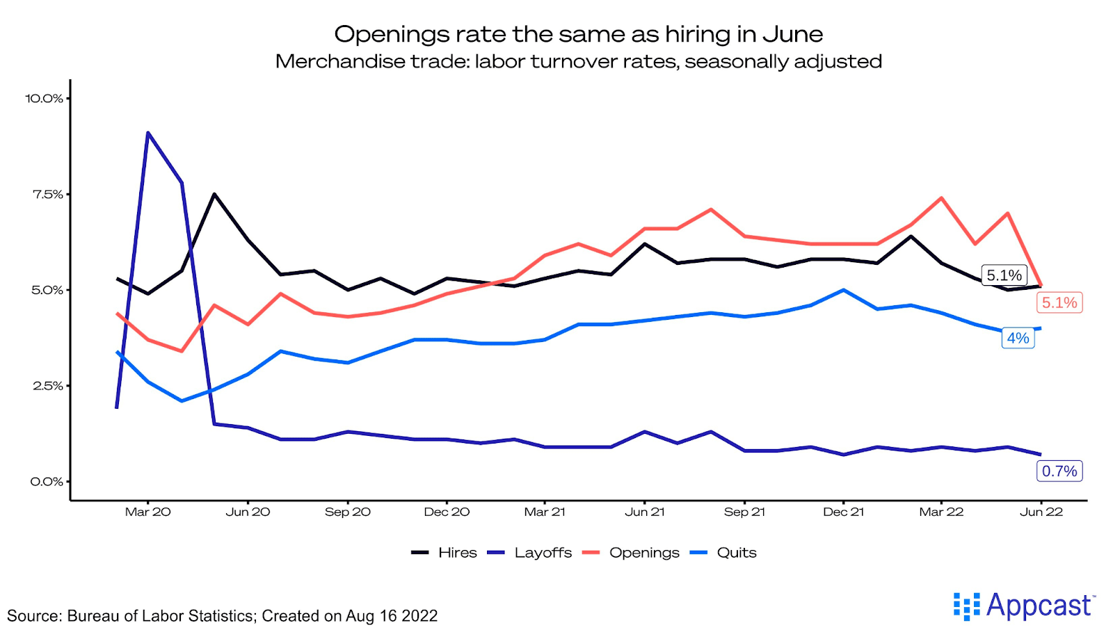 Demand for workers in retail fell in June as companies ramped up their inventories. Though retail sales have stayed relatively constant, the continued shift of consumer demand is impacting the labor market in retail. However, labor demand is set to increase as retailers move into the busy holiday season.