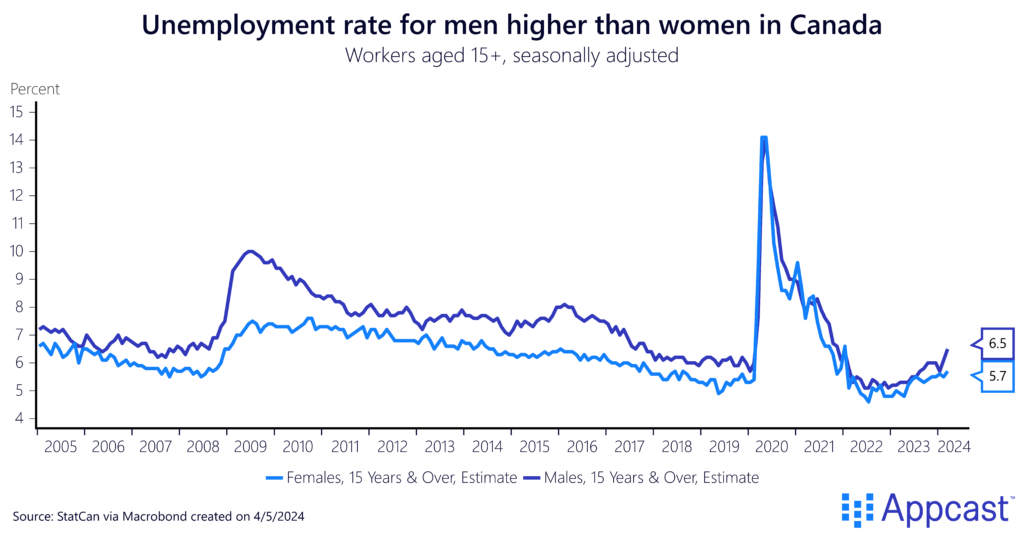 A notable trend observed in recent months is the gradual increase in the unemployment rate for men compared to women. Last month, this gender gap widened to a recent high of 0.8 percentage points, primarily due to a 0.4 percentage point increase in the unemployment rate for men.