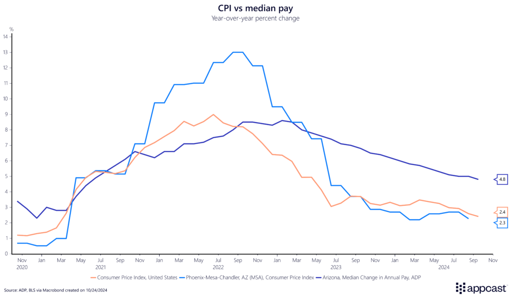 Inflation in large MSAs like Phoenix has exceeded the national average by a significant amount. And after roughly two years of declining purchasing power, real wage growth only turned positive about a year ago.