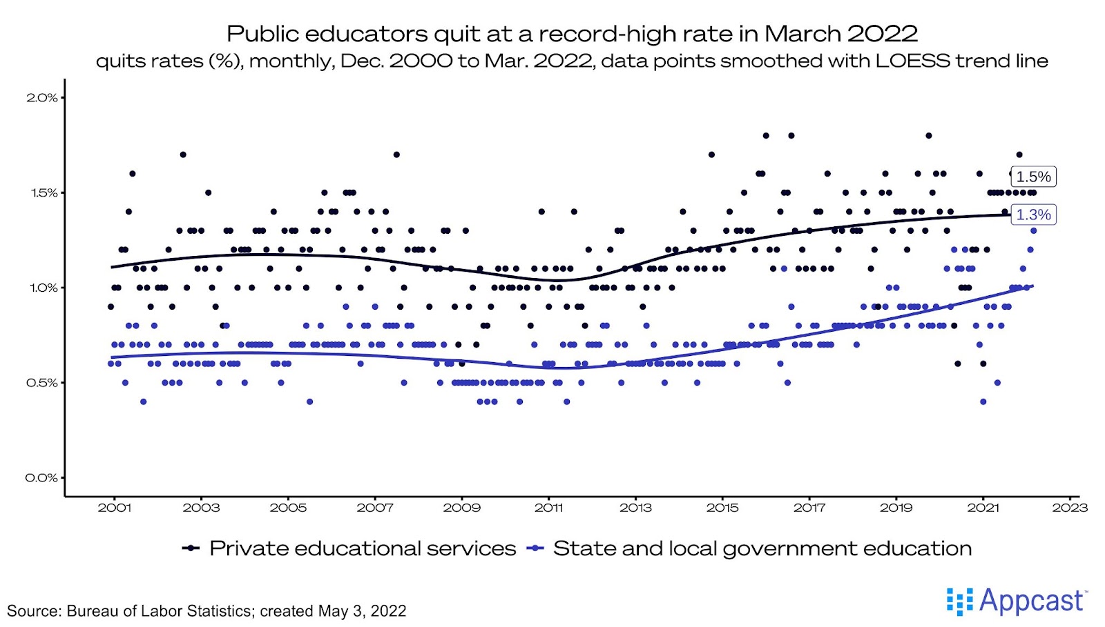 It’s Teacher Appreciation Week, but some educators aren’t feeling so appreciated. It appears that the ballyhooed Great Resignation is now affecting education: Teachers are quitting at record-high rates.
