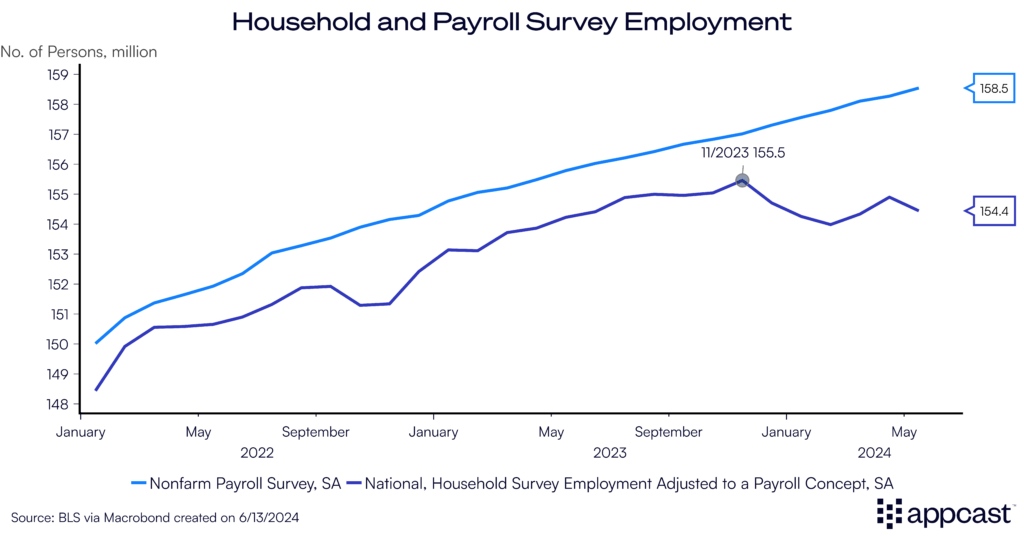 The main reason why the household survey might be off is due to the surge in migration that the U.S. experienced in 2023.