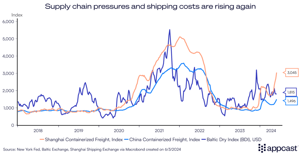 While rising trade costs have not reached the level yet seen at the height of the supply chain disruptions during the pandemic, they will put pressure on European inflation data in the year to come if the situation persists. And this, of course, is exactly the opposite of what the ECB would like to see and would mean higher European interest rates for longer, at the expense of the domestic economy.