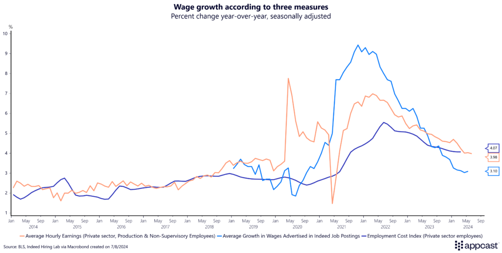 Wage growth has continued to slow as well, now below 4% year-over-year for non-supervisory employees.