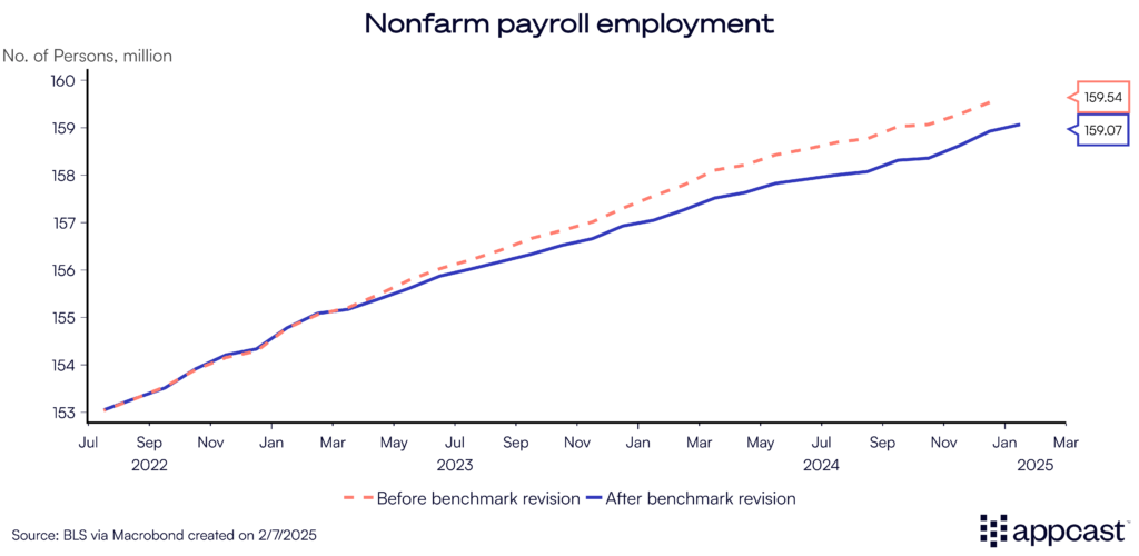 Today’s jobs report, for January 2025, was not your typical jobs report. Beyond the monthly job gains and unemployment numbers, historical revisions were released that transformed our view of the recent past of the U.S. labor market, while providing insight on the present and future trends.