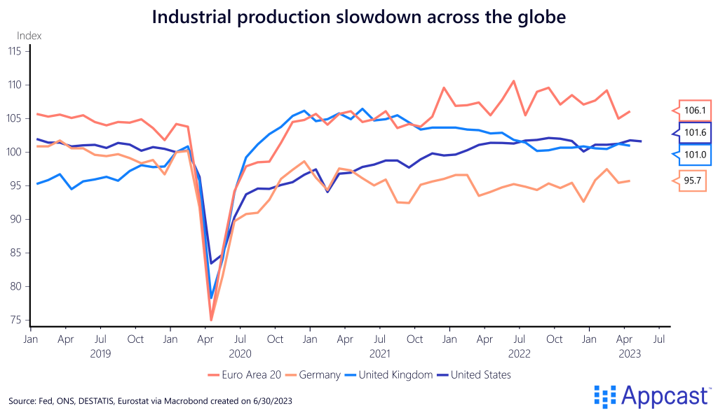 More recently, however, industrial production has stagnated or even declined across advanced economies as global economic growth has cooled down substantially with central banks around the world hiking interest rates rapidly to ease inflationary pressures.