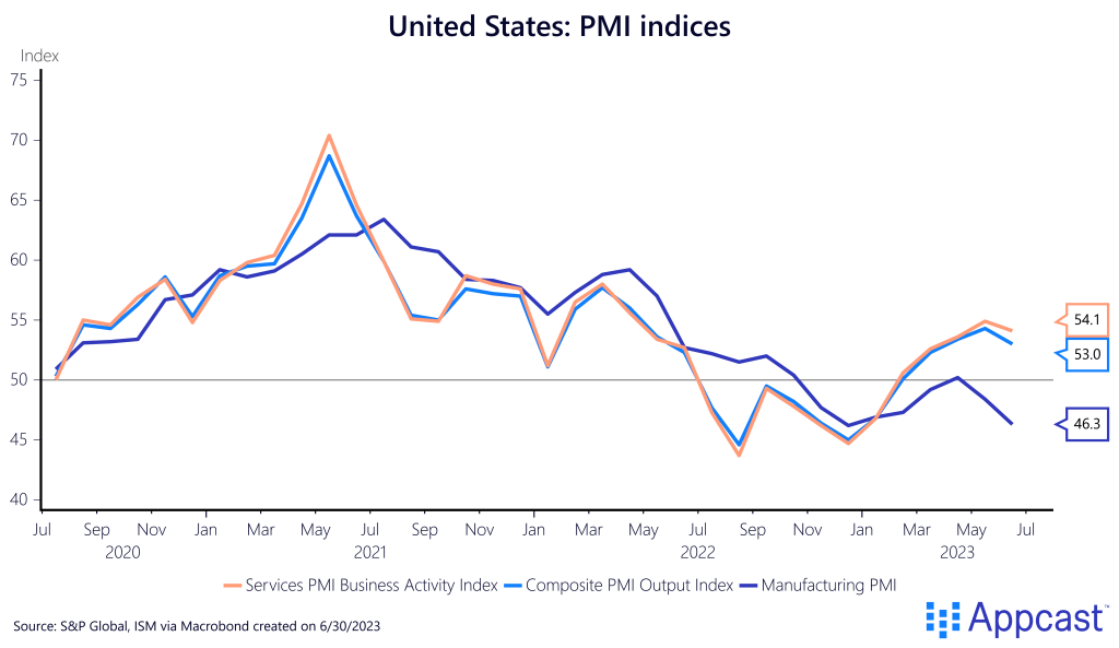 PMI data shows a manufacturing downturn amidst a service boom