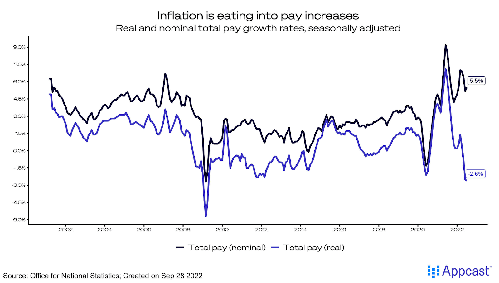 A devastating energy crisis has spurred decades-high inflation in the U.K. The country’s inflation rate is the highest among rich countries: prices were up 9.9% from the year before in August. While the cost of living rises, workers across the U.K. are experiencing eroding real incomes.