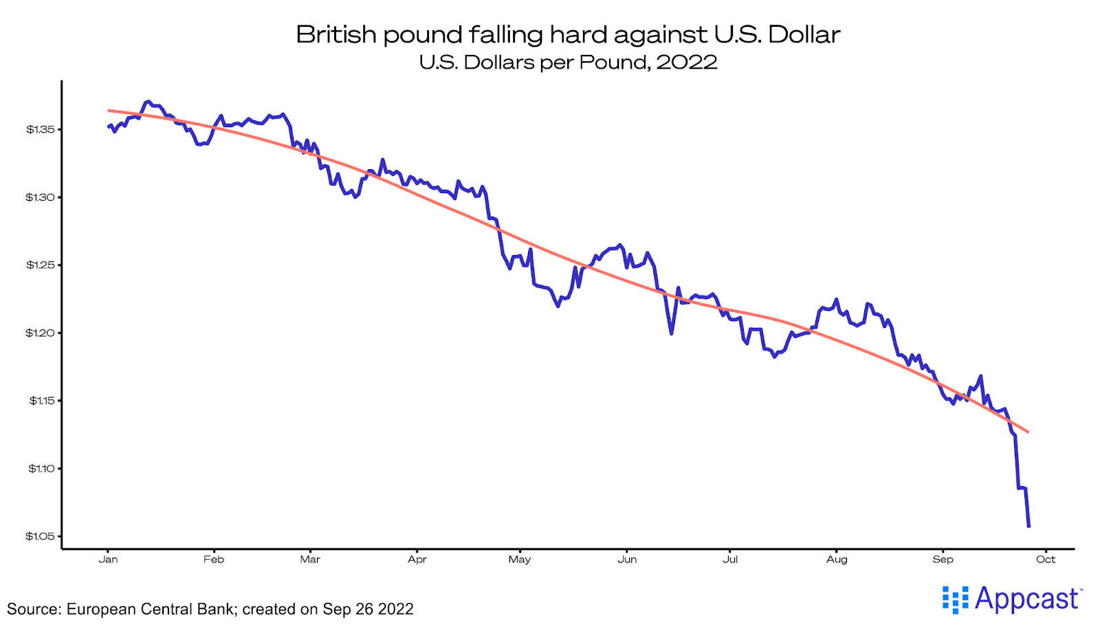 Also impacted by the confidence crisis the mini-budget created: the British pound. The currency depreciated rapidly this week – nearly falling to parity against the U.S. dollar. Now, U.K. workers are facing inflation with a weaker pound, exacerbating the cost-of-living crisis.