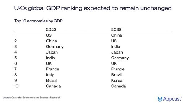 The U.K., on the other hand, is expected to remain the sixth-largest economy in the world until about 2040, according to projections from the Center for Economic and Business Research.