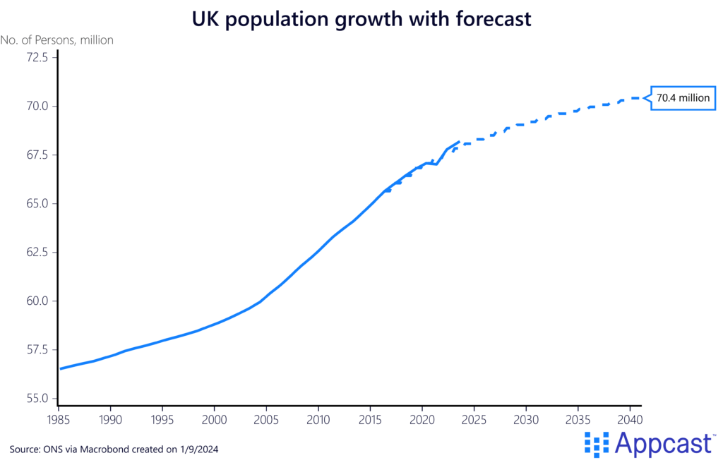 Forecasters expect the U.K.’s population to increase above 70 million in the decade to come. However, there is a large amount of uncertainty around this estimate, as it currently looks like population growth will exceed the forecast.