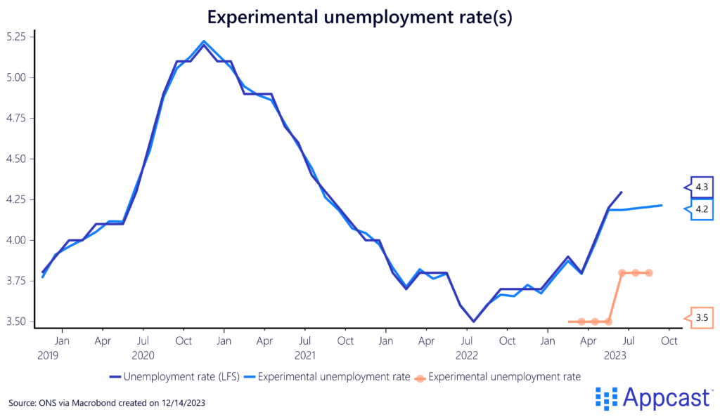 Long story short, the U.K. labor market data is currently a bit of a mess, and we do not quite know where we stand. The unemployment rate might be at 4.2%, as the experimental data shows, or below 4% per the TLFS, or it could be higher than either measure shows.