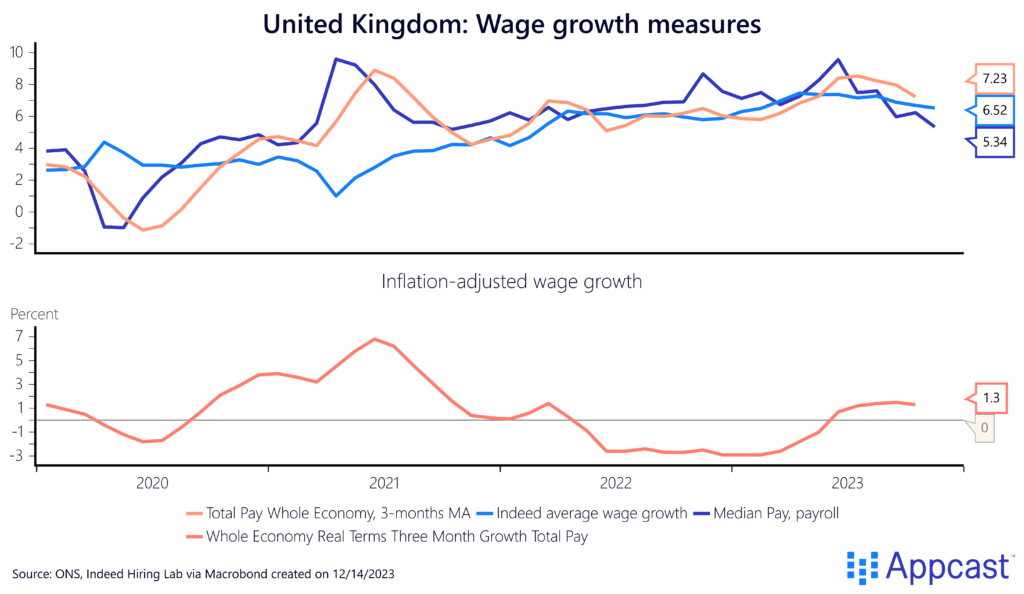 However, job growth has slowed down since the summer and was slightly negative in November. It is becoming very evident that the U.K. labor market is easing compared to last year.