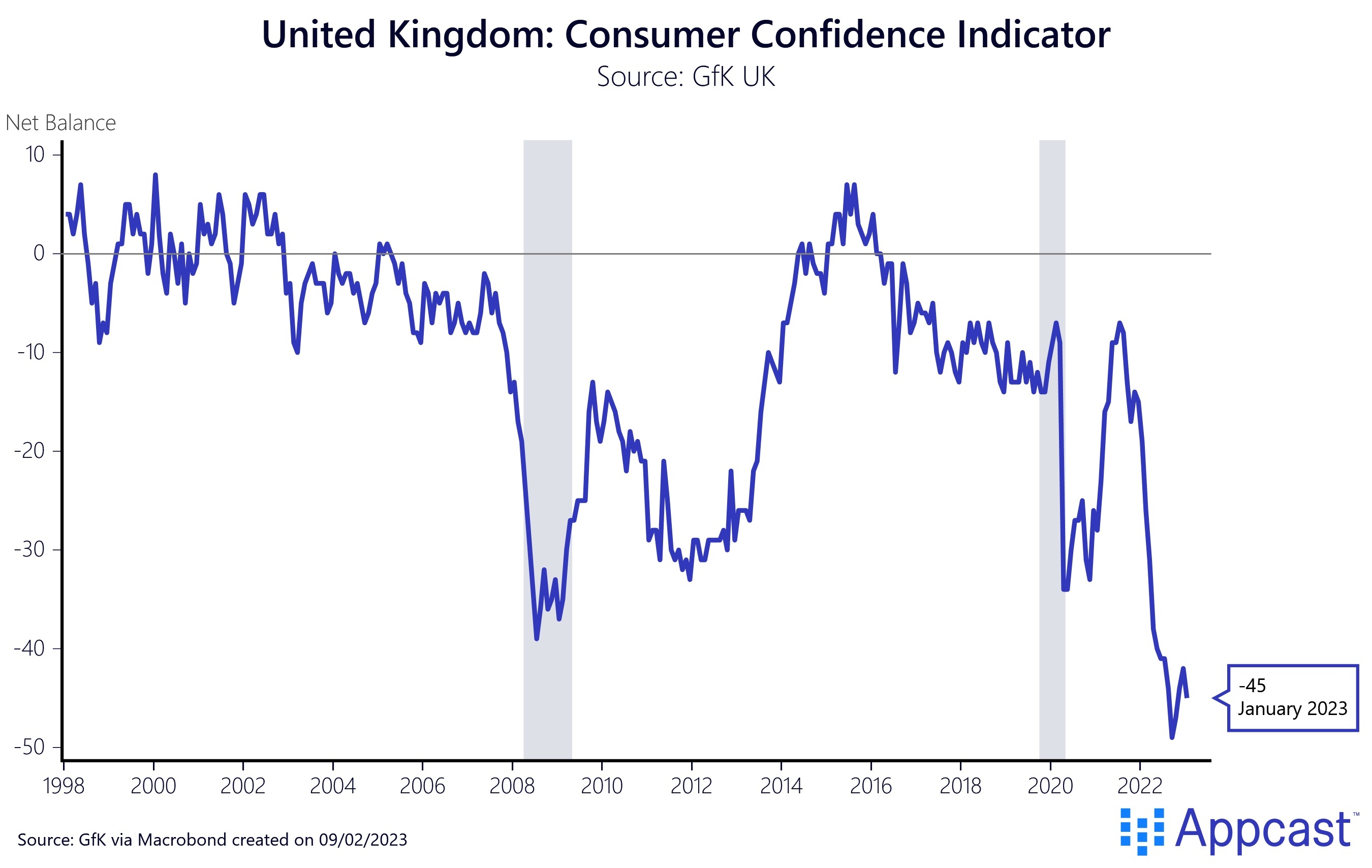 In contrast to the U.S. and Germany, hard economic data in the U.K. has also been quite abysmal. The economic outlook for 2023 and beyond is mediocre as well.