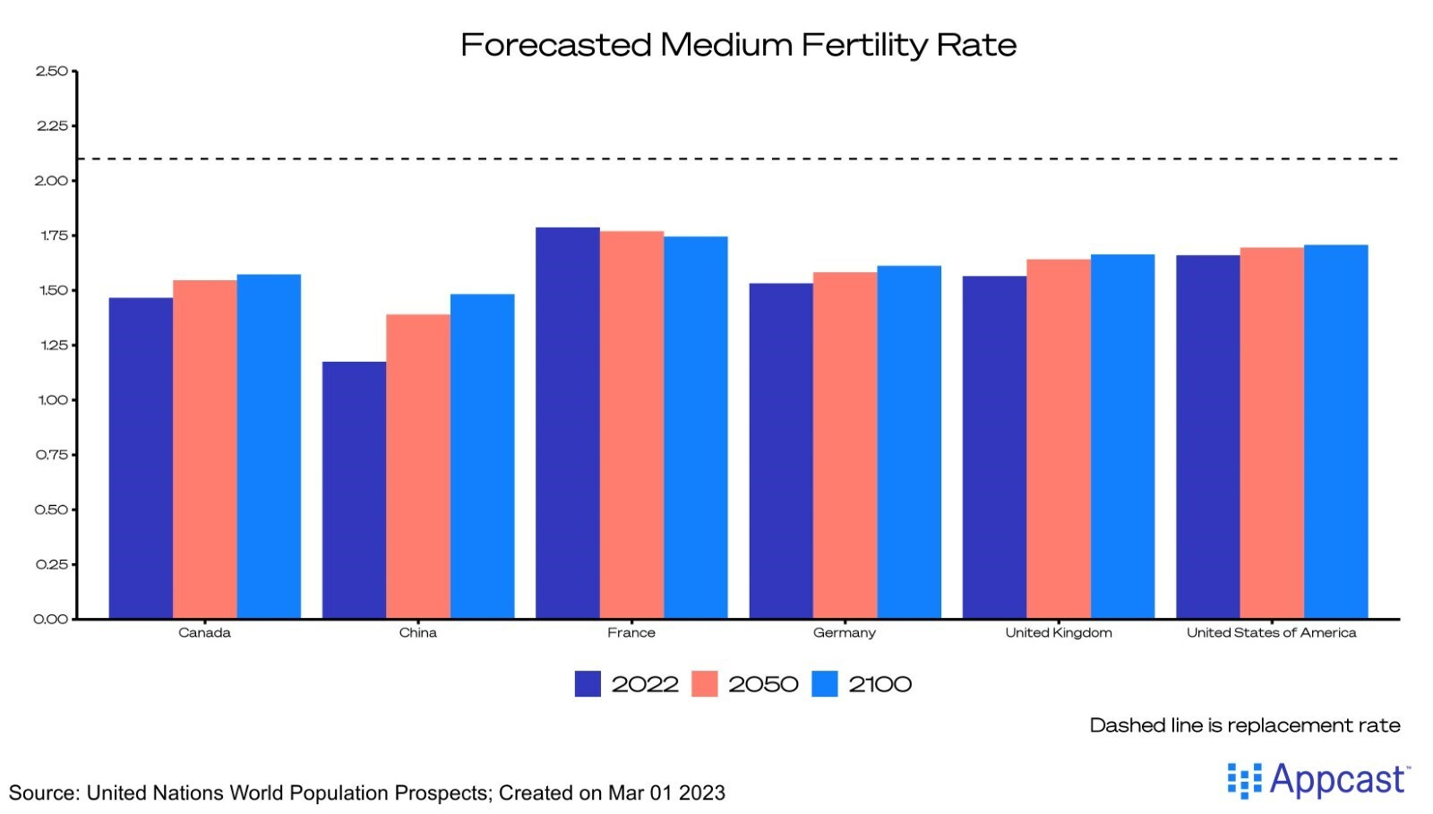 Demographers forecast that fertility rates across advanced economies will remain below two for the foreseeable future, and the same is true for China.