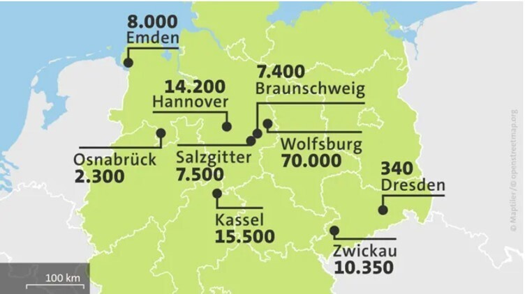 Volkswagen employs some 85,000 workers in the region Braunschweig-Wolfsburg in Northern Germany where the company’s headquarters are located. This is a sizeable chunk of total employment for a region that has about one million inhabitants and half a million workers.