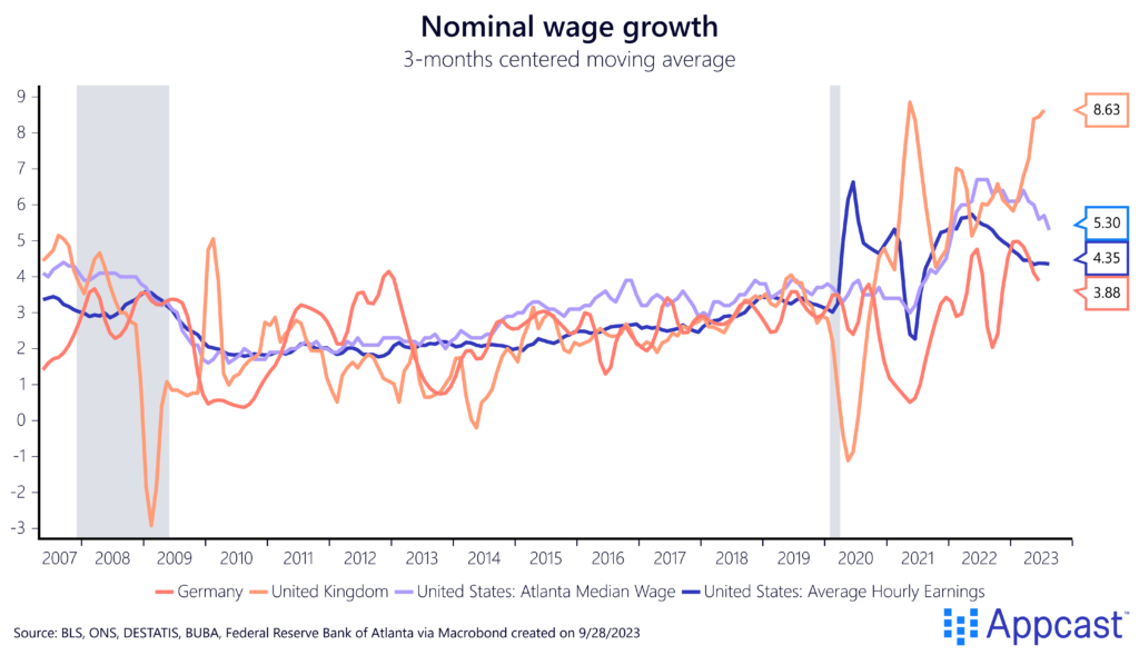 While the story for the Eurozone is a little bit more nuanced, workers there have also been able to make up for lost income in the form of higher wages more recently. And the same is broadly true for the U.S.