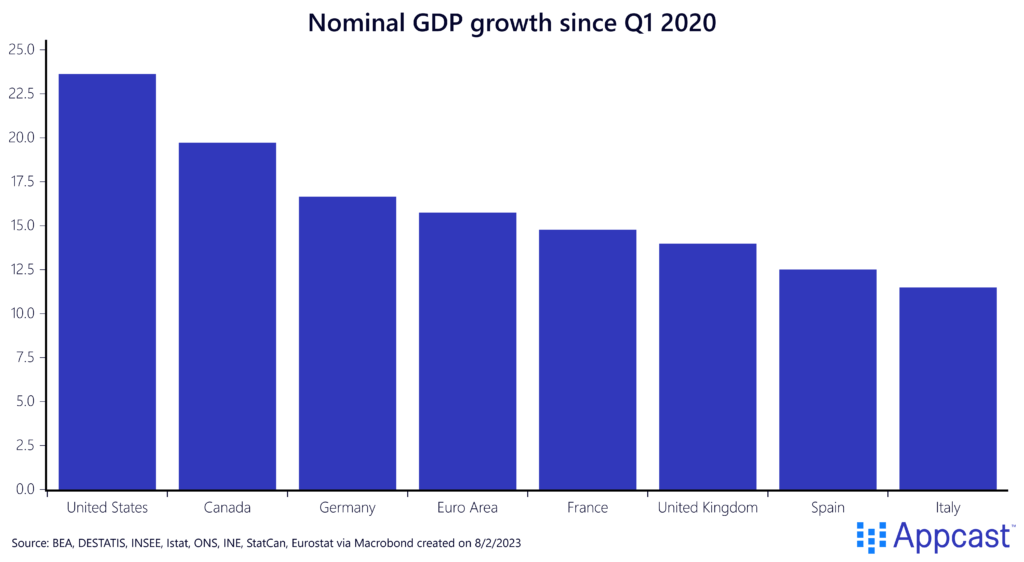 Even as Germany’s fiscal expansion from 2020 to 2022 was on the larger side in Europe, it is now being undone. The German economy was tipped into a technical recession earlier this year precisely because there was a large negative impulse from fiscal spending.