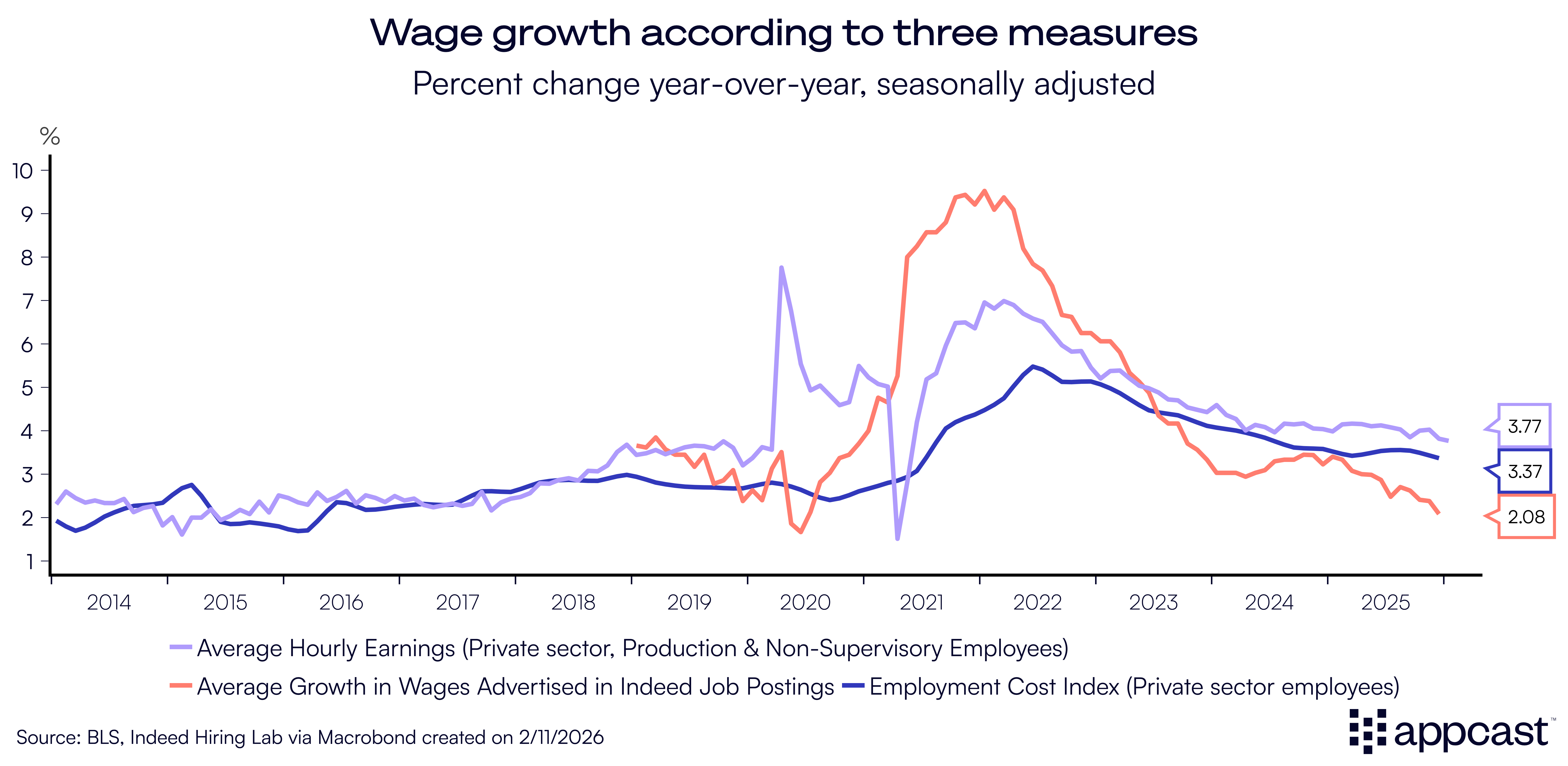 Given the drop in unemployment and surprisingly strong job growth, the dynamics behind demand (hiring) and supply (workers) shifted in favor of workers this month as wage growth rose at a solid pace of 3.8% for non-managerial workers. Recruiters may anticipate higher wage expectations for skilled trades and healthcare workers over the year as immigration restrictions may renew some modest labor shortages.