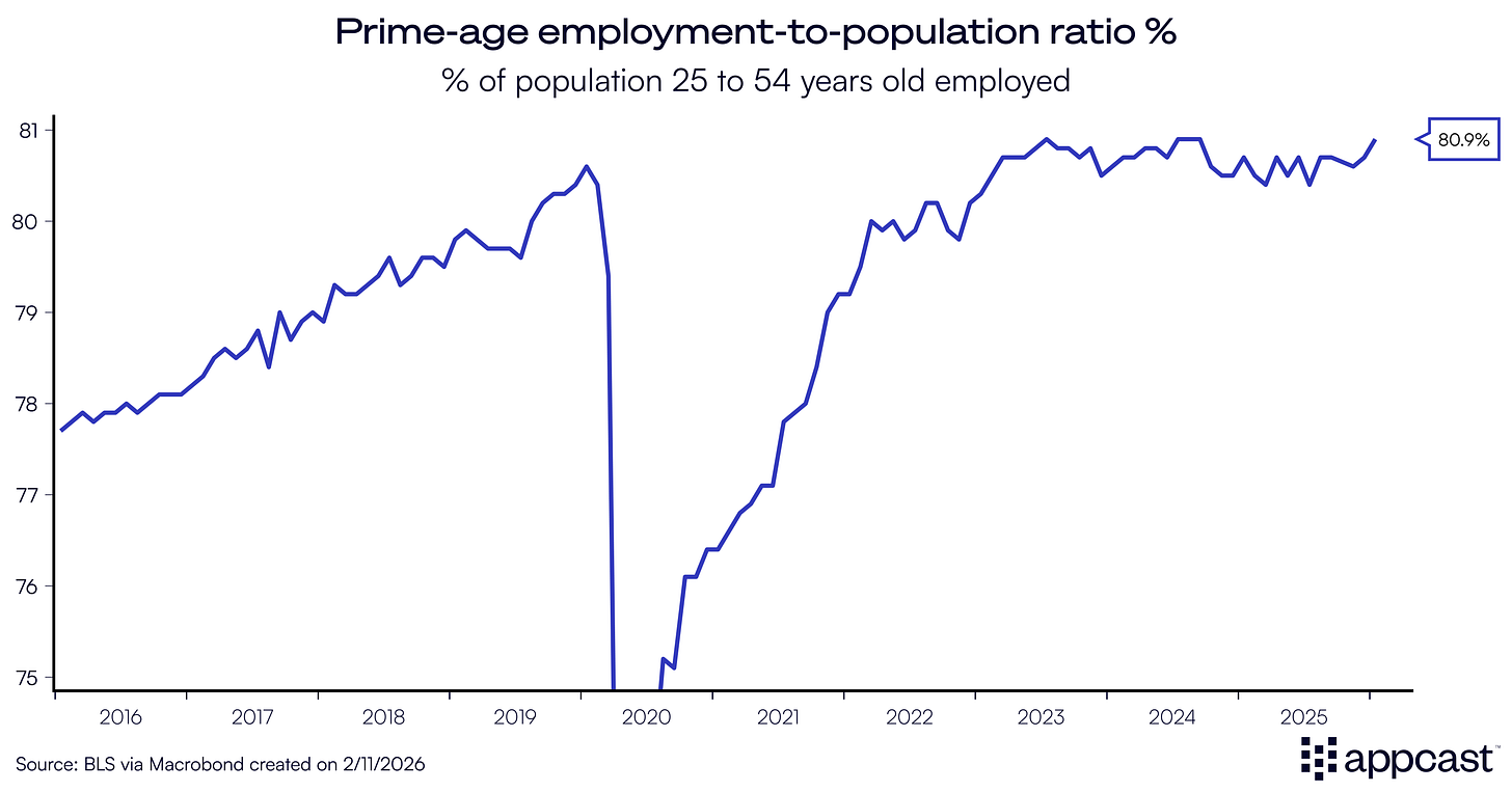 The most promising development was the rise of the prime-age employment-to-population ratio to 80.9%, meaning the core of the labor force remains engaged and willing to work.