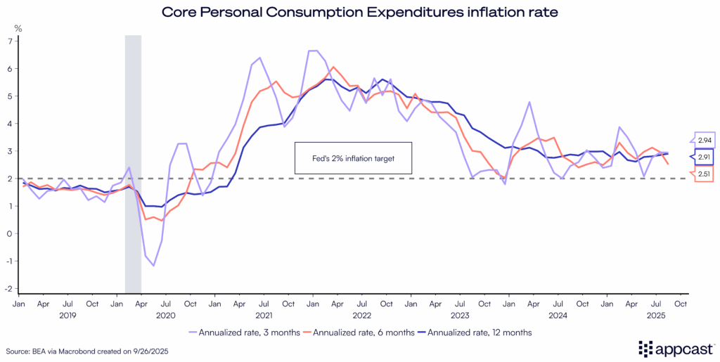 So, if that’s stagnation, what about inflation? The latest August inflation figures ticked up, stubbornly above the Fed’s 2% target. Earlier this week, Fed Chair Jay Powell noted that inflation progress has been uneven, while risks of “higher and more persistent inflation” remain, and interest rate cuts will respond to a “one-time increase in prices” from tariffs in a different way than if inflation remains an ongoing problem.