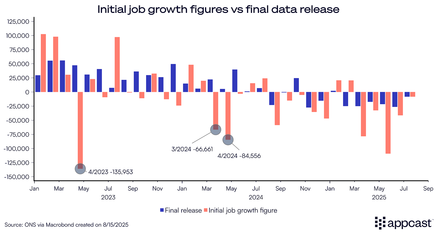 Revisions to economic data are very common and just a natural process when dealing with data collection. There is a natural tradeoff between accuracy and speed of release. We need economic data to be timely, but that also means that early estimates are not as accurate. The problem with the U.K. payroll data is that the bias is predictable beforehand. The first data release is consistently inaccurate in one direction, meaning that statistical adjustments to the process could improve the data if the ONS was willing to make the investment.