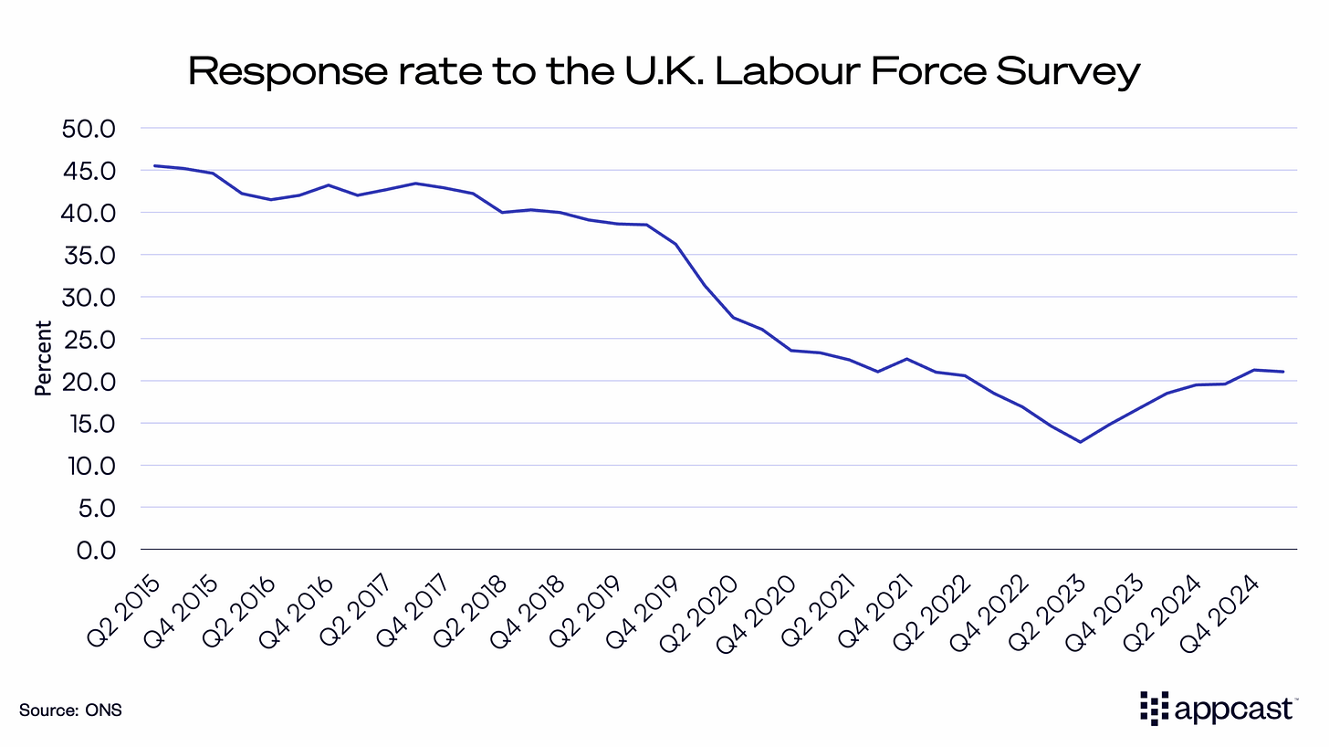 While there has been slight improvement since then, response rates remain low. Meanwhile, a methodological overhaul was promised but has been postponed several times and was pushed out to 2026.