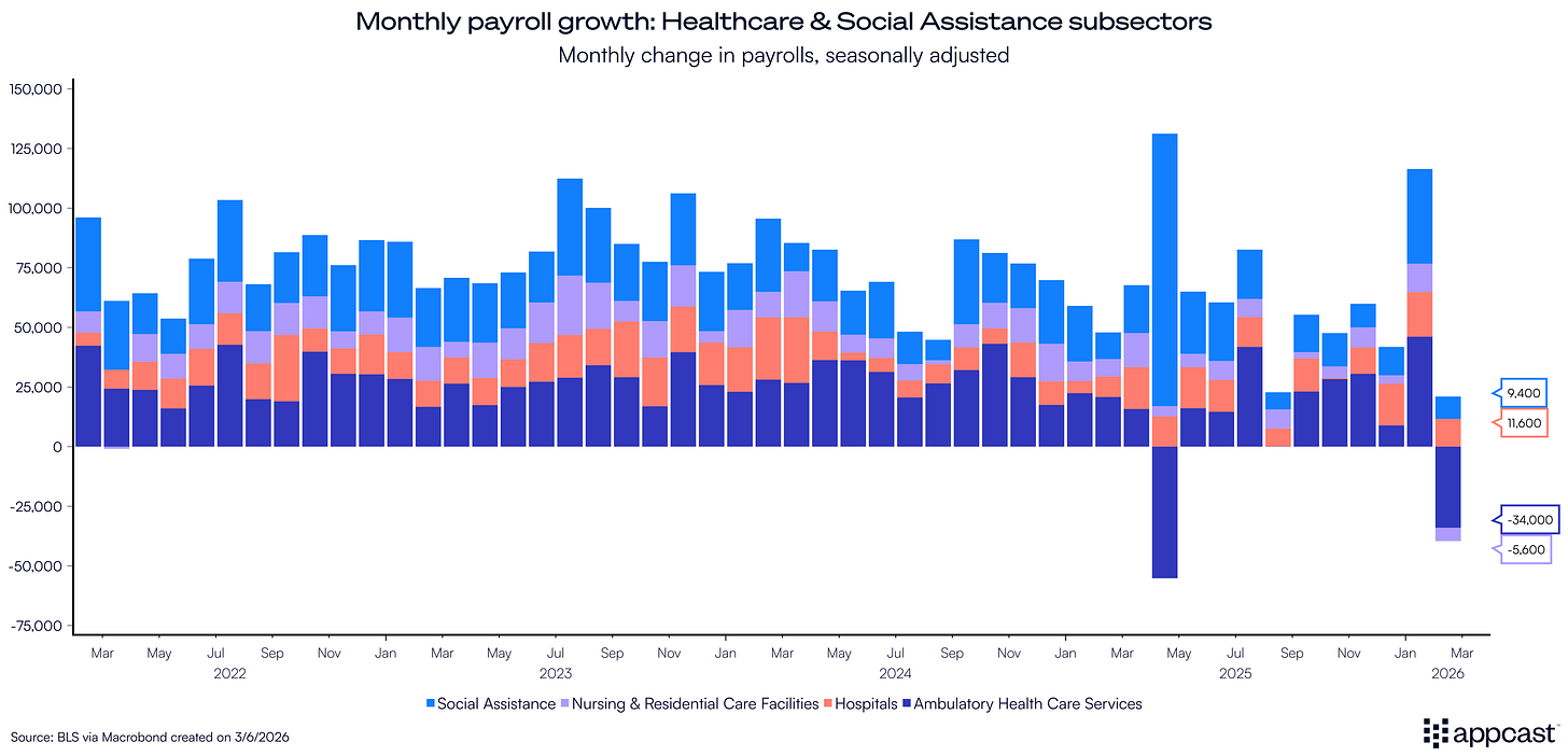 The strike is one factor. But what about all the funding cuts from the federal government? There was $1 trillion in cuts to Medicaid to be phased in over the next decade. There were cuts to state-level Affordable Care Act subsidies, which haven’t been fully reinstated. Perhaps this is a turning point for the industry. It’s just one month of data, so it’s early to be catastrophizing — but it’s a concern.