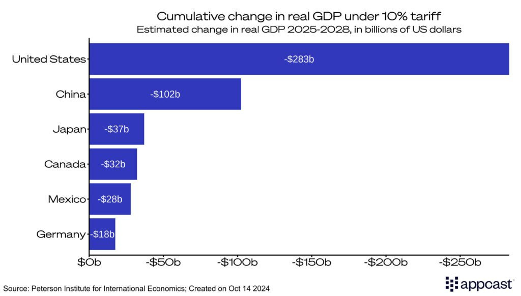 What are those longer-term costs? The Peterson Institute did not just estimate the impact deportations would have on the economy; It reviewed the impact of tariffs as well. In their model, that assumed a universal 10% tax on all imported goods would reduce U.S. GDP by $283 billion by 2028.