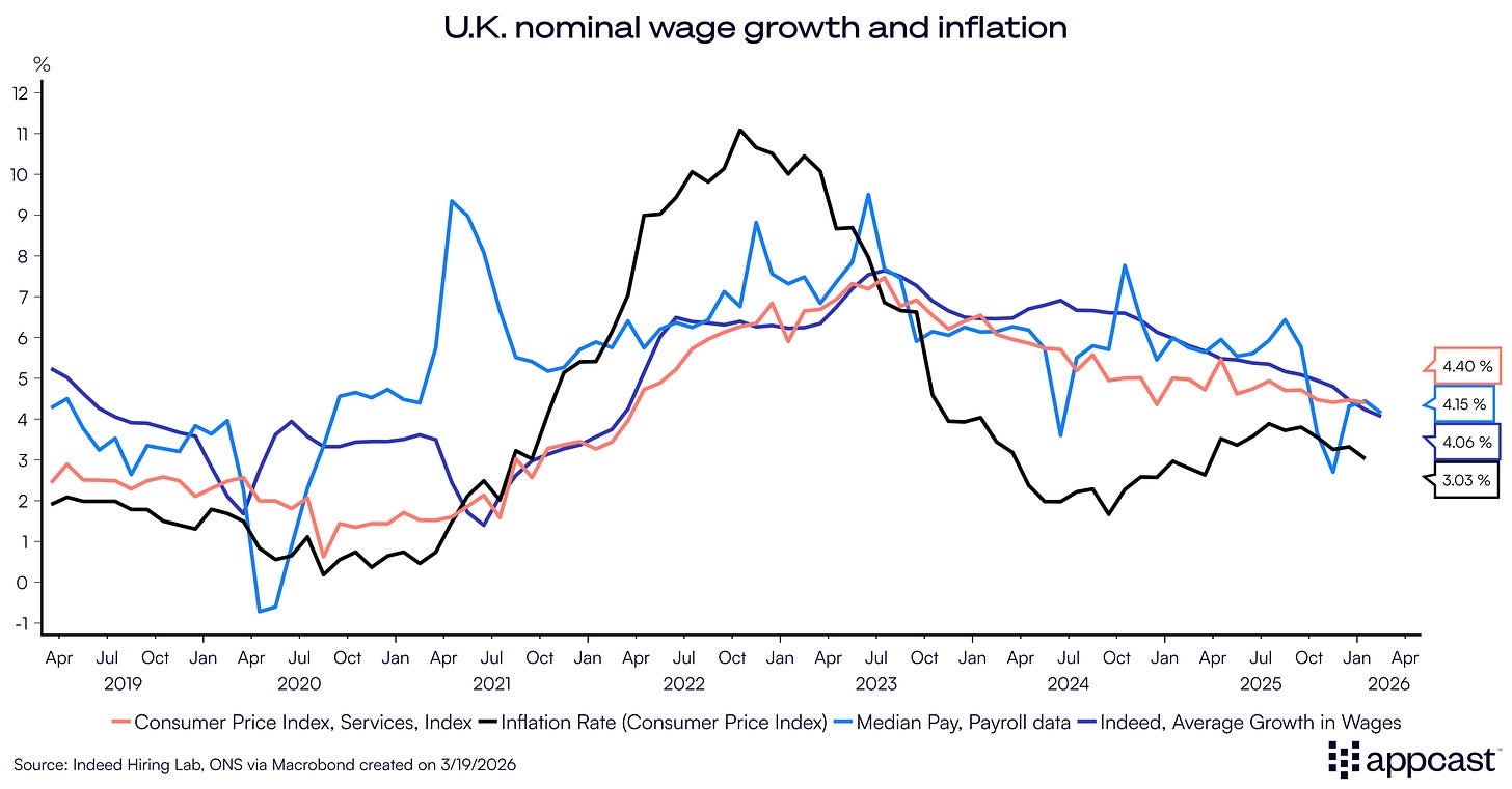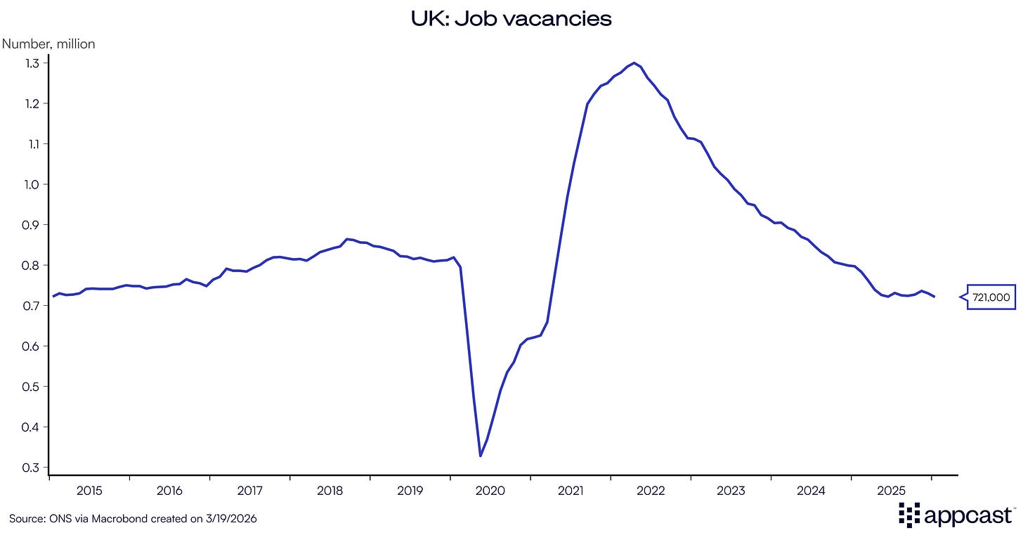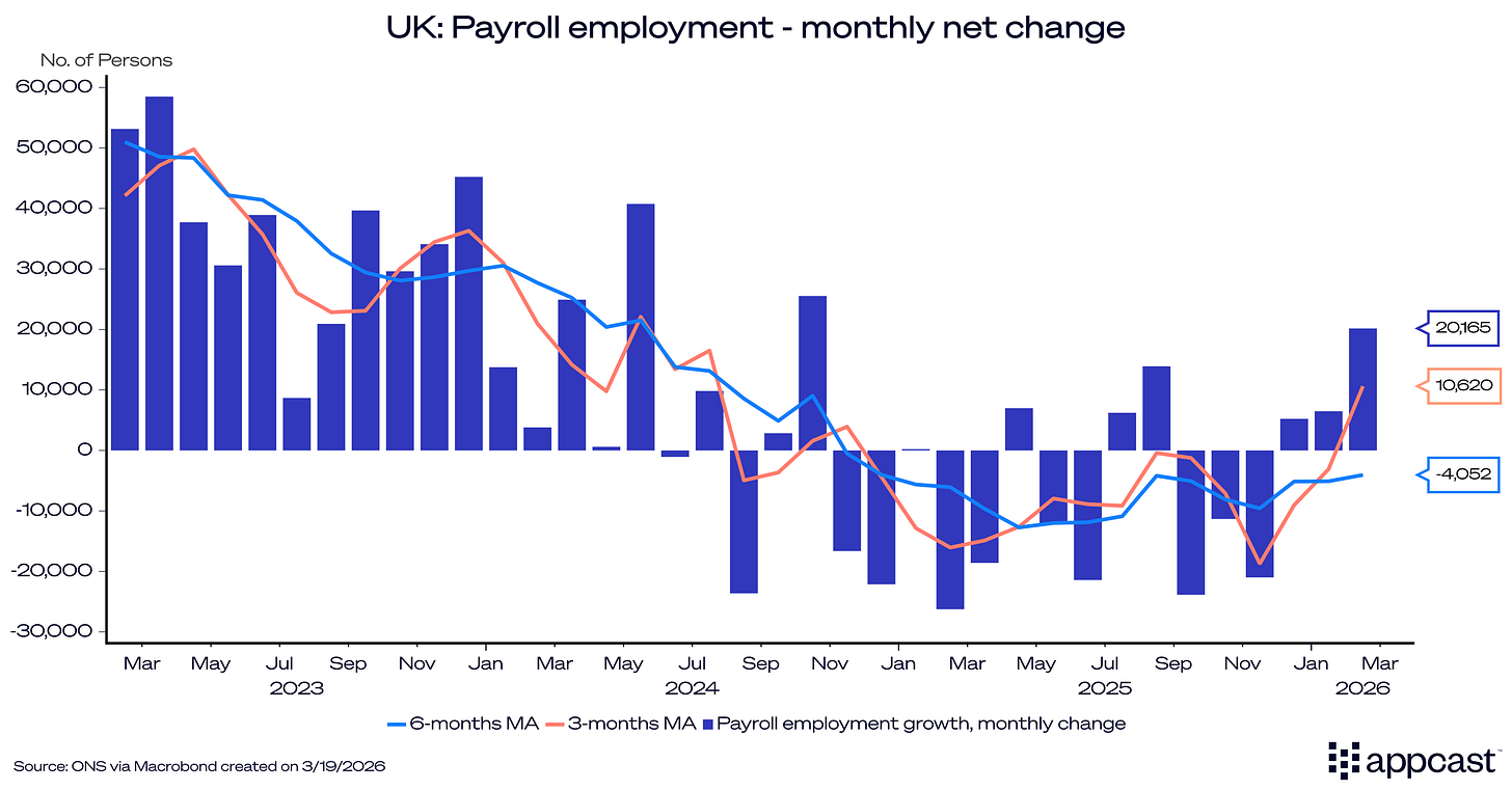 Two major things happened today in the U.K.: The labor market data surprised on the upside with payroll employment numbers showing some modest job gains. However, this was overshadowed by the Bank of England’s (BoE) decision to keep interest rates steady as the world economy is facing a significant oil shock.