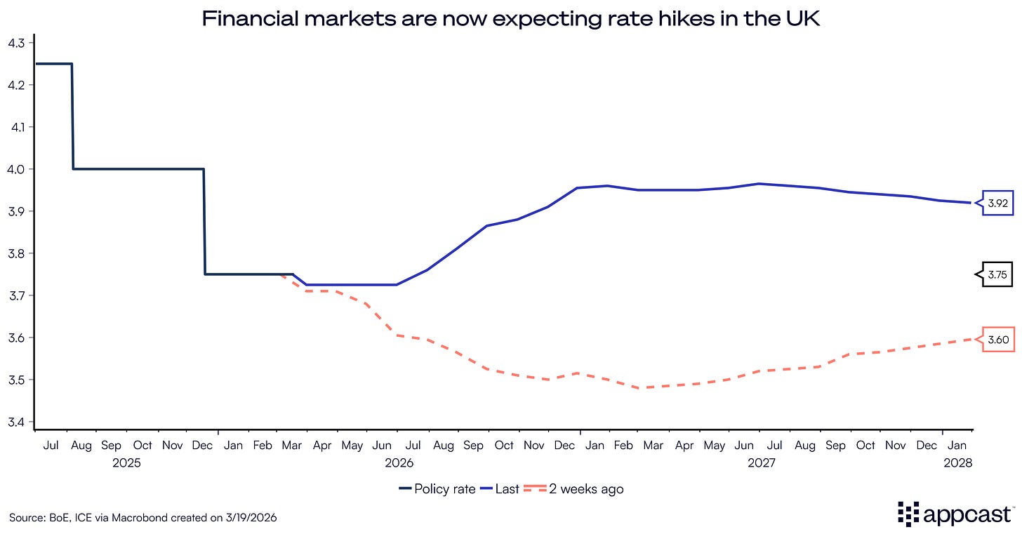 Financial markets are now pricing in two, possibly three, rate hikes for the remainder of the year, compared to two rate cuts before the conflict in the Middle East escalated.
