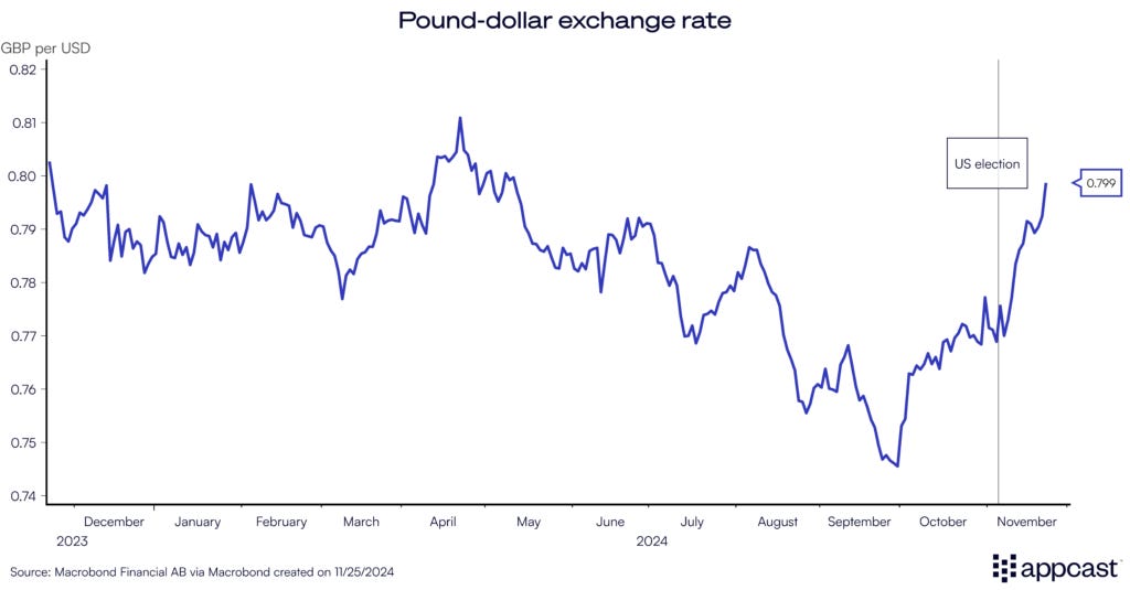 But even as the U.K. service exports are sheltered from tariffs, the economy may still suffer due to the international role of the dollar. Many of Trump’s economic policies are inflationary in nature, meaning higher U.S. interest rates.