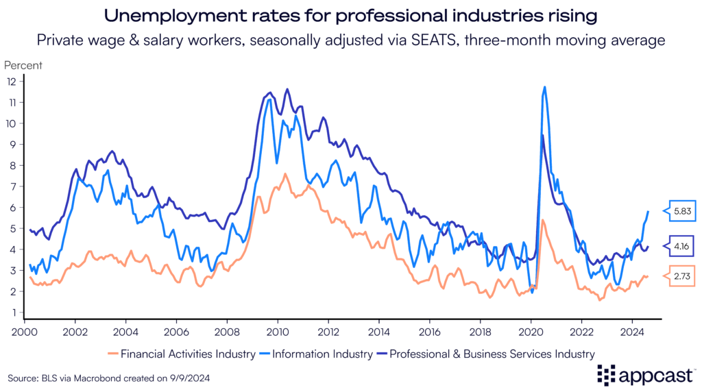 Therefore, unemployment across white-collar sectors has been rising since the beginning of the year. While it is nowhere near the highs seen during either recession in the 21st century, the increase is worrisome. Anecdotally, this also tracks. For example, McKinsey plans to make hundreds of staff redundant across the globe as demand for consultant work has dropped.